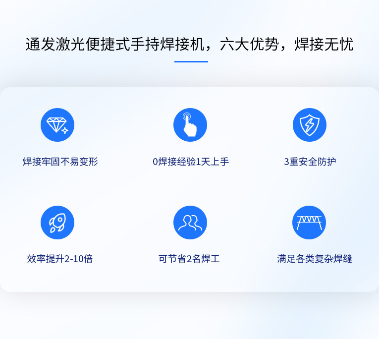 通發(fā)激光便捷式手持激光焊接機,小巧便攜,方便移動,適合戶內(nèi)外外工地移動焊接,是遠(yuǎn)距離焊接大工件的全新焊接利器。